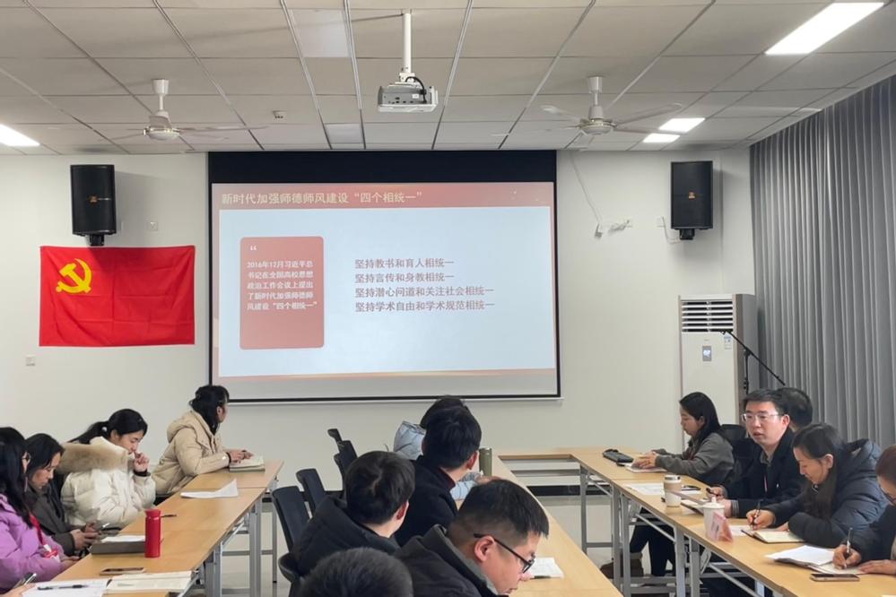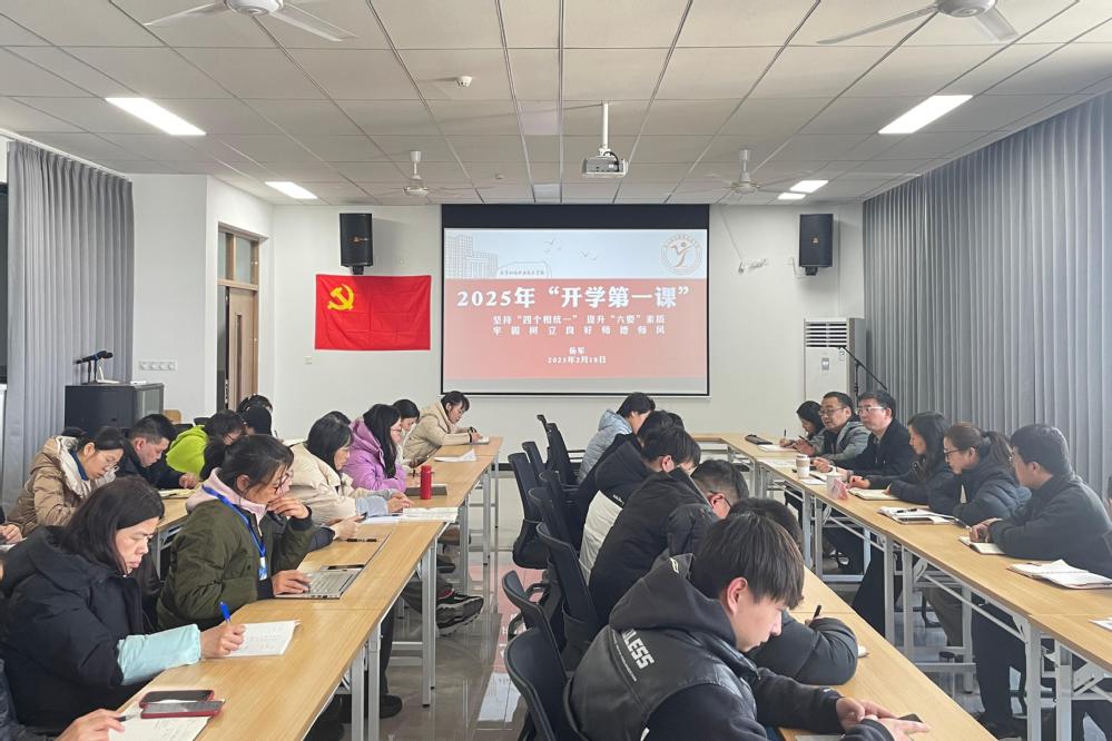 杨军围绕“坚持‘四个相统一’提升‘六要’素质牢固树立良好师德师风”主题给全体教职工上2025年“开学第一课”。他对全系教职工提出四点希望:一要坚定理想信念,做不忘初心的模范;二要热爱教师职业,做爱岗敬业的模范;三要涵养高尚师德,做修德立身的模范;四要提升专业素养,做追求卓越的模范。杨军指出,师德师风是教育之魂,安全稳定是发展之基,全体教职工应增强舆情意识,在日常工作和生活中规范自身言行,以身作则,积极传播正能量,划清底线标好高线,严守师德师风,弘扬高尚师德。