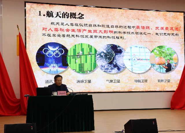 方向明首先带领大家回顾了人类航天事业的起源、发展历程以及关键里程碑事件,展现了航天事业从无到有、从小到大的壮丽图景。他详细介绍了新时代中国航天事业取得的辉煌成就,如载人航天、月球探测、北斗系统及天宫空间站等,彰显了我国航天事业的蓬勃发展和国际地位的提升。他强调,航天事业具有高风险、高投入、国际化合作和技术创新驱动的特点,对国家安全与国际地位具有重要意义。通过讲述航天先驱与当代杰出人物的故事,方向明弘扬了勇于探索、挑战极限、无私奉献和团队合作的航天精神。他鼓励大家在新时代背景下继续发扬航天精神,推动航天事业高质量发展,激励师生勇于追梦、担当责任,为航天事业贡献力量。