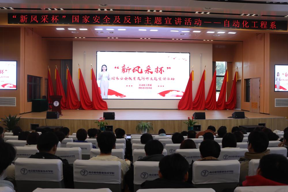 时值三月春光好,正是筑安正当时。为深入贯彻落实总体国家安全观,提升学生安全防范意识,3月18日,自动化工程系举办新风采杯国家安全教育防诈主题宣讲活动。活动面向全系班级学生干部、学生会成员、团委骨干及国家助学金获得者共计400余人,特别“邀请”数字人“南小安担任主持人,通过AI+教育新模式开启安全教育新篇章。