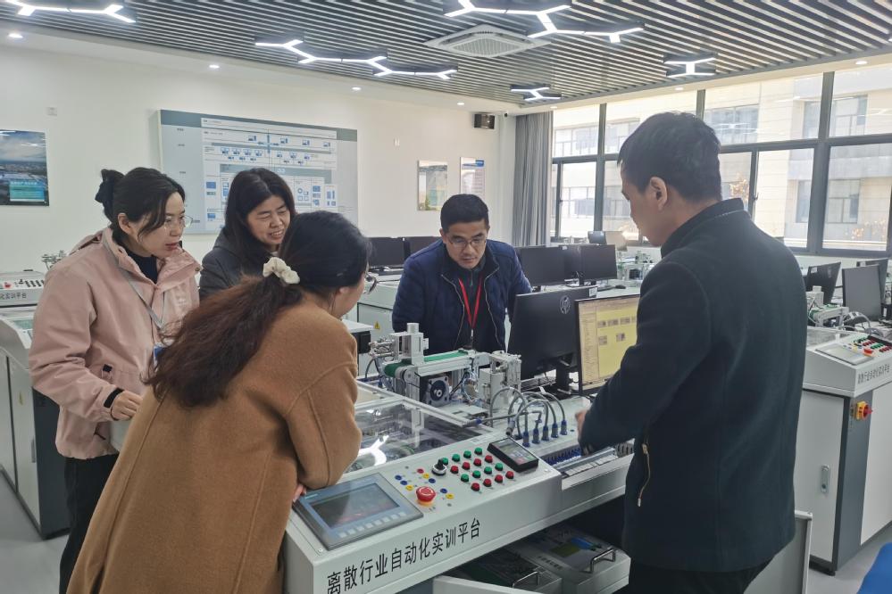 基于一体化课程教学的独特要求,实训中心规划为理论与实操两大功能分区。工程师在理论区围绕西门子智能制造的核心理论,深度剖析《PLC应用技术》《变频技术》等课程的关键知识点,不仅对教材内容进行了细致解读,还结合当下智能制造领域的实际应用案例,让教师明晰理论知识在现实生产中的具体呈现形式。随后,组织教师们分组讨论,鼓励教师们结合自身教学经验,探讨如何将这些理论知识巧妙地融入日常教学,激发学生的学习兴趣,提升教学效果。
