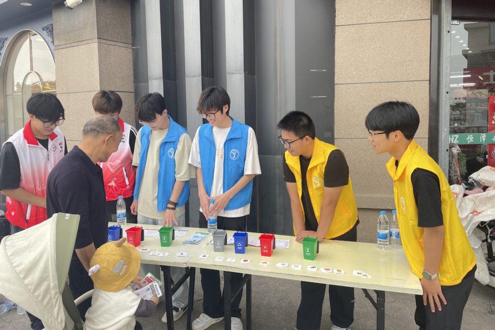 带着满满的热情与知识,团员青年们前往碧桂园社区,兵分两路展开行动。一支队伍化身“环保使者”,向社区居民、周边商家发放垃圾分类宣传手册,耐心讲解相关知识,并组织趣味互动小游戏。志愿者们用迷你垃圾桶和卡片模拟垃圾投放场景,让居民在轻松愉快的氛围中掌握分类技巧。小朋友们也积极参与其中,在欢乐互动中,一颗环保的种子在他们心里悄悄种下。