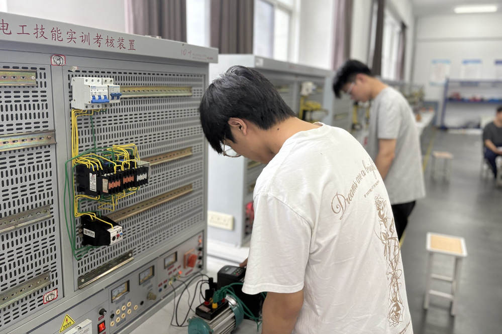 考核前,同学们进行了为期三个月的集中培训。培训形式以理论与实操相结合,培训内容紧扣《国家职业技能标准》,围绕电工高级工的核心技能需求,重点涵盖了继电器、接触器控制电路分析,常用电力电子装置维护,可编程控制系统编程与维护,变频器使用等模块。依托学校先进的电工实训室、智能制造自动化实训室、电力电子实训室,为同学们提供了沉浸式的学习环境。
