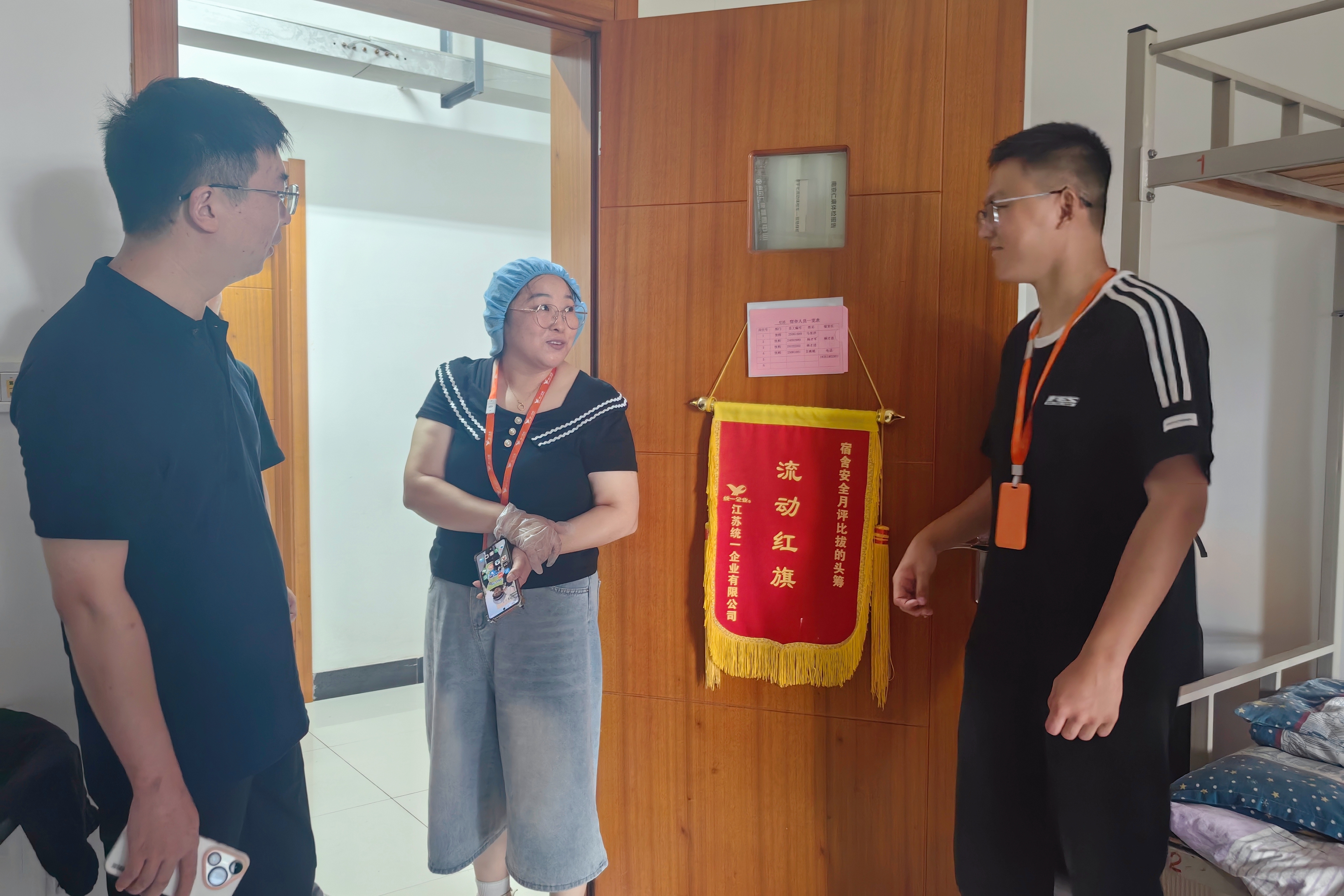在江苏统一企业有限公司,自动化工程系党支部书记杨军和辅导员俞青一行与“统一订单班”的实习学生及企业负责人举行了交流座谈。座谈会上,江苏统一企业有限公司厂长路宝首先介绍了学生近期的实习到岗情况,岗位适应表现及完善的生活保障措施。随后,师生就实习体验与未来发展进行了深入交流,现场氛围融洽、暖意浓浓。座谈会后,杨军一行还在路厂长、制瓶制造课长柴叶倩的陪同下深入企业食堂和学生宿舍,实地了解同学们的企业生活环境。