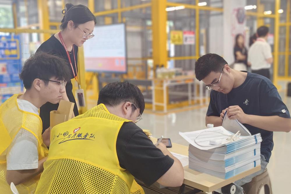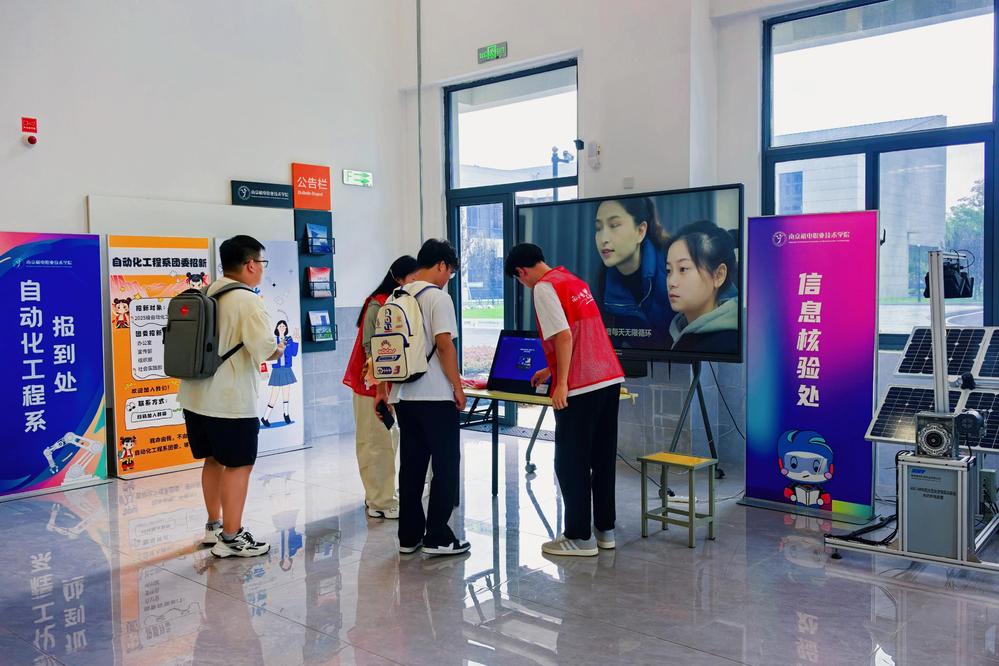 迎新现场,一群“小黄人”来回穿梭,格外亮眼。由系团委、学生会和各班级学生骨干组成“南小电”志愿服务队主动上前协助搬运、指引路线,为新生答疑解惑、送上暖心问候,迅速消解了新生初入校园的陌生感。