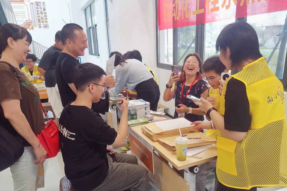 迎新现场秩序井然,许多家长陪伴孩子前来报到,目光中交织着对孩子初次离家的不舍以及对未来成长的深深期许。系领导班子和各专业负责人、专任教师向家长们简要介绍学校和院系概况、专业建设、教学资源、学生日常管理、职业发展规划等情况,同心同向,共同助力学生成长成才。家长们对学校的精心安排和热情接待表示感谢:“看到自动化工程系充满活力的迎新氛围和令人震撼的电梯产业学院实景,我们很放心把孩子交给南机电。相信学校能提供很好的平台和环境,希望孩子珍惜宝贵的大学时光,努力学习,锻炼自己,在这里获得成长,增强本领,将来成为有用之才。”