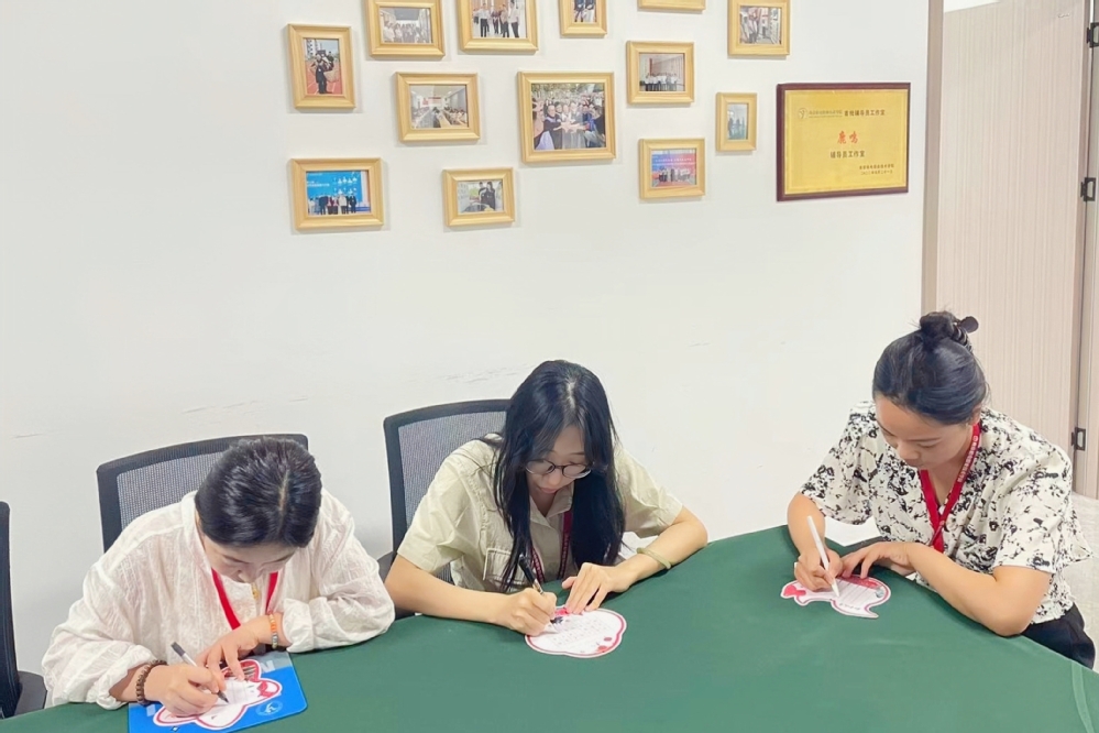 笔墨传情,师生共书担当。在主题书法活动环节,全体师生以“我和祖国共成长”“强国复兴有我”为创作核心,将满腔爱国情与报国志倾注于笔端。一幅幅风格各异、笔力遒劲的作品,既展现了师生共同的文化素养与精神风貌,也传递出“以青春之我,建设青春之中国”的坚定信念。