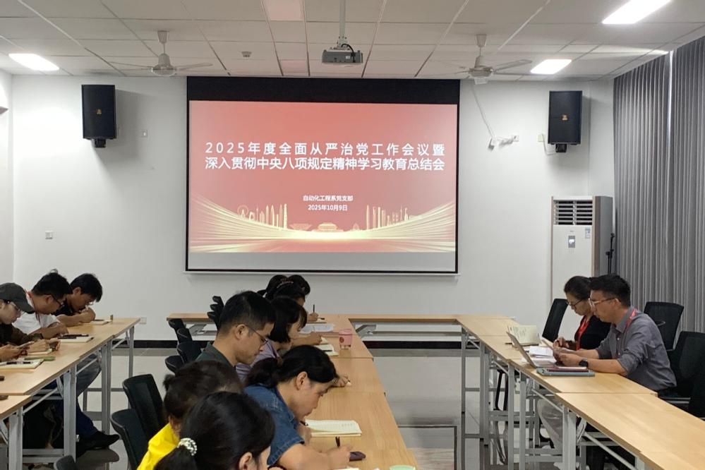 10月9日,自动化工程系党支部召开2025年度全面从严治党工作会议暨深入贯彻中央八项规定精神学习教育工作总结会,总结支部开展学习教育取得的成效,部署学习教育常态化长效化工作。党支部书记杨军主持会议并讲话。