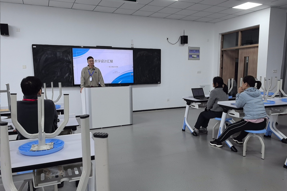 金老师详细汇报了《电工基础》课程教学设计方案,内容涵盖课程定位、目标、内容、方法与单元设计五个维度:课程作为专业必修基础课,衔接高中物理与高等数学知识,为后续《电子技术》《工厂电气控制技术》奠基,为学生岗位实践与继续深造储备关键技能。与会教师一致认为,课程实施须遵循“基础够用、实践突出”原则,在保障理论系统性的同时强化实践环节,搭建基础学习与专业应用之间的桥梁。