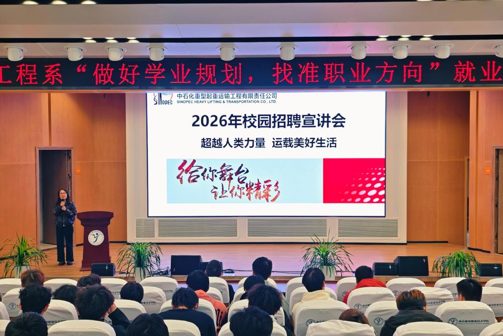 11月4日,自动化工程系“做好学业规划,找准职业方向”就业指导讲座暨中石化重型起重运输工程有限公司招聘宣讲会于乐学楼102圆满举行。中石化重型起重运输工程有限公司人力资源部主任助理宗晓云、高级主管成文婧、集团公司技能大师朱继福,自动化工程系副主任顾晟吉、就业干事俞青及2024级学生代表共300余人参加了此次活动。