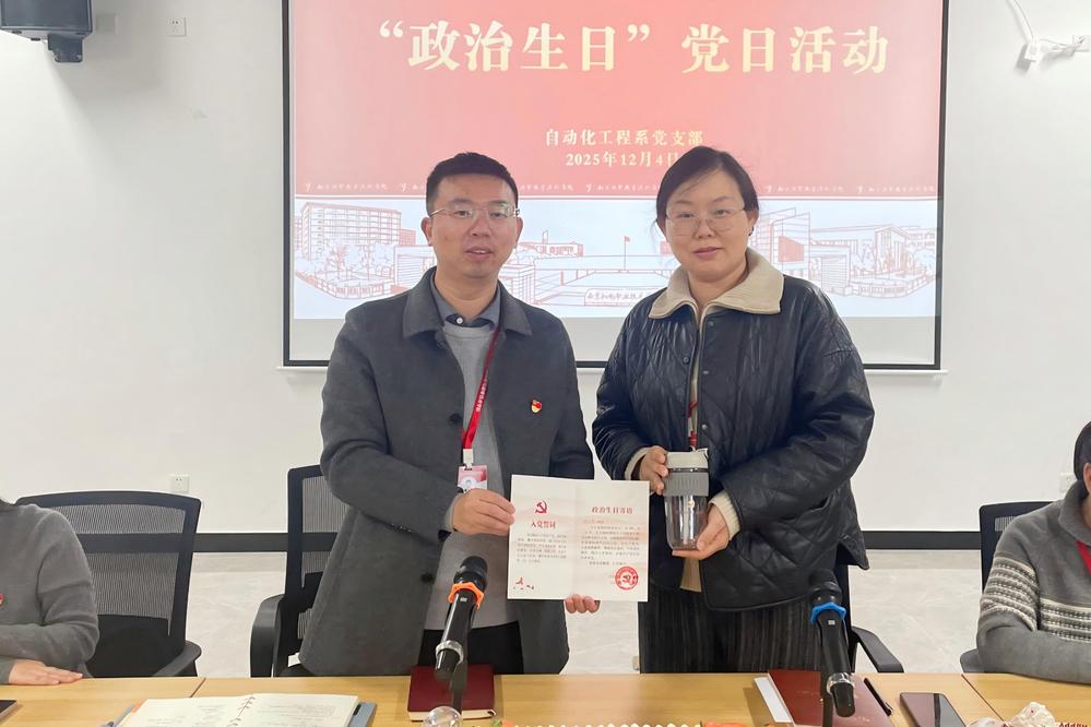 组织上入党,一生一次;思想上入党,一生一世。2024年以来,自动化工程系党支部严格执行“政治生日”制度,坚持每年第二季度和第四季度持续开展集体“政治生日”党日活动。此次活动不仅是一次深刻的党性教育,更是一次凝聚力量、激发干劲的集体动员。自动化工程系全体党员将始终牢记入党誓词,自觉筑牢纪律意识,切实增强履职能力,以更加昂扬的姿态发挥先锋模范作用,以实际行动诠释责任担当,为推动学校事业高质量发展贡献智慧与力量。