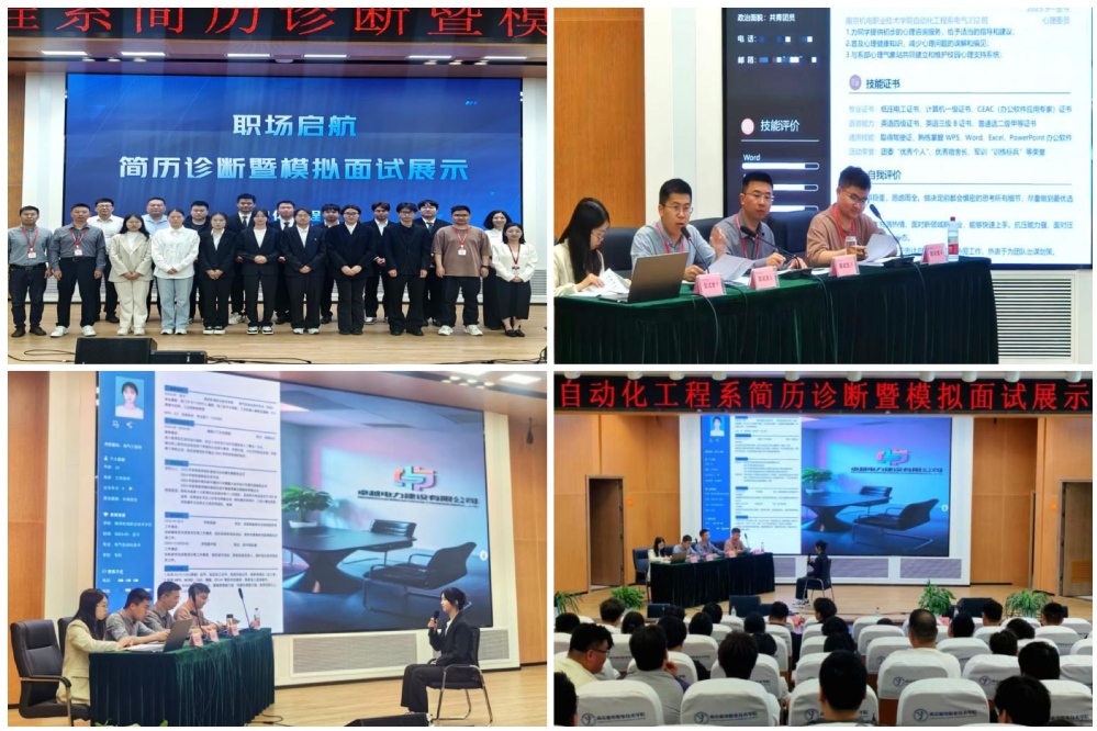 在“一站式”学生社区上演沉浸式求职实战演练公开课。校企联袂打造“虚拟企业+真实面试”双轨并行创新模式的“简历诊断暨模拟面试展示”公开课吸引自动化工程系逾200名2023级学生参与。江苏华玻光电、中建安装集团等实体企业HR精准把脉,为准实习生构筑“仿真+实战”的就业能力提升通道。