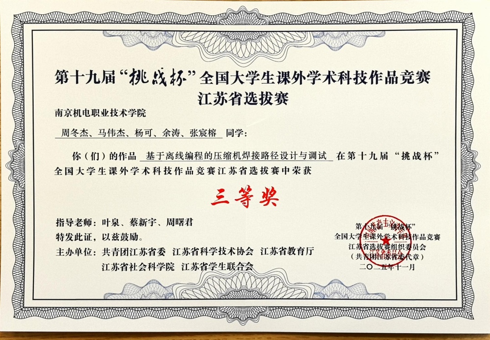 喜报:自动化工程系在第十九届“挑战杯”全国大学生课外学术科技作品竞赛江苏省选拔赛中喜获佳绩